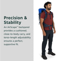 A rugged, streamlined take on the classic rucksack, this hiking pack offers an adjustable men's fit and ample volume for hiking and efficient overnights. An AirScape™ backpanel delivers cushioned, close-to-body comfort, while torso-length adjustability ensures a precise fit. Stash essentials in front shove-it and hipbelt pockets, plus a hidden main compartment side zipper. Raincover included.
