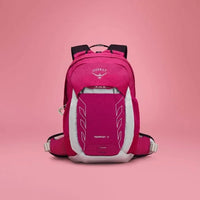 Pink and gray Osprey backpack on a white background Pink backpack with black interior on a white background Pink Osprey backpack on a white background Person wearing a pink backpack on a white background Gray and teal backpack on a white background Backpack with teal straps on a white background Gray and teal backpack on a white background Back view of a teal and black backpack on a white background Person wearing a pink backpack on a white background